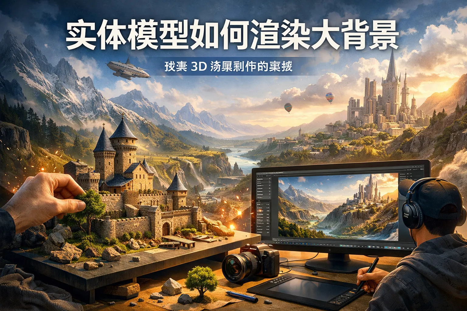 在为实体模型渲染大背景时,哪些关键因素会影响整体效果?如何保证背景与模型的协调性?