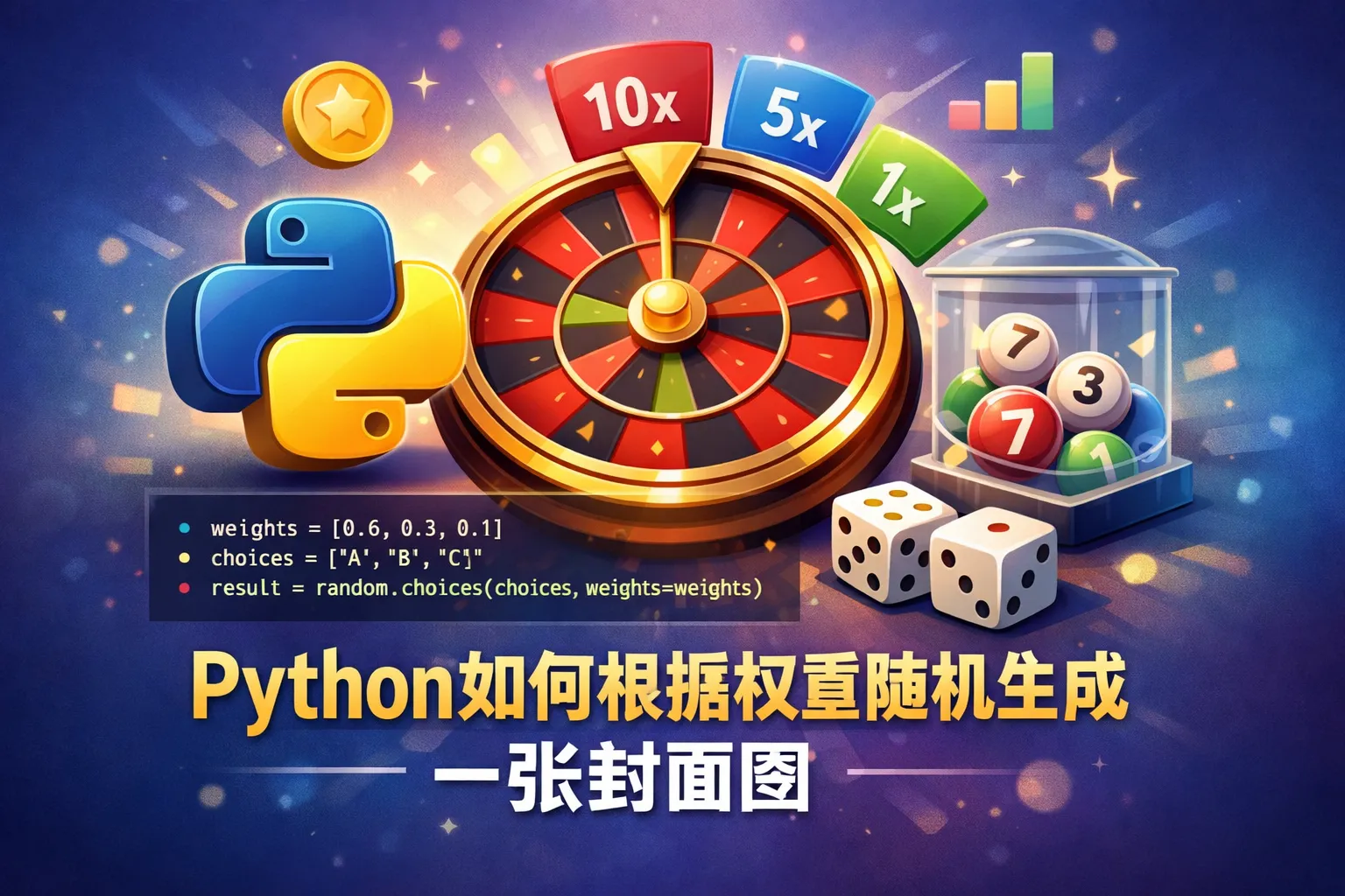 Python的random模块提供了choices函数,可以通过传入权重列表,实现带权重的随机选择。例如: