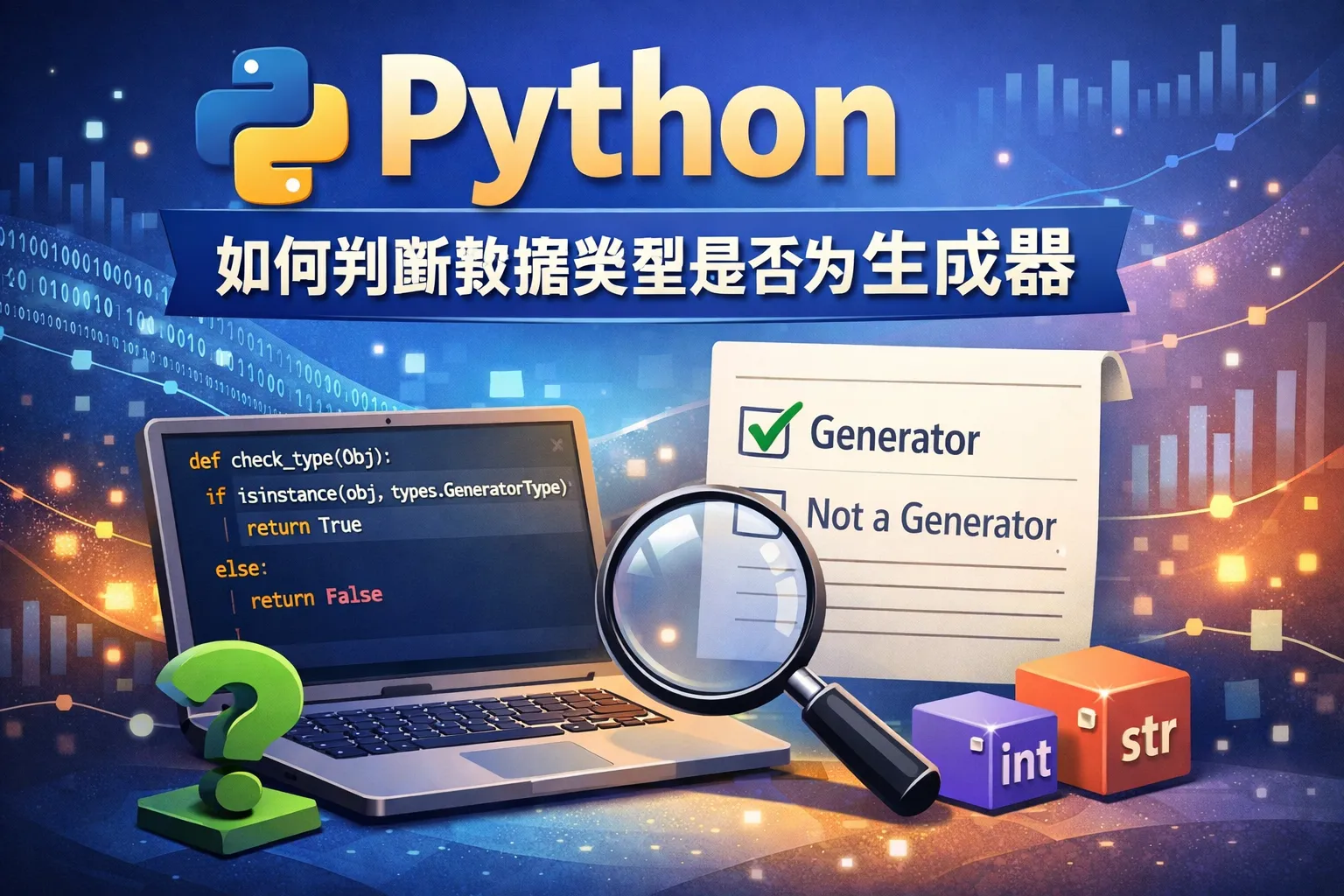 isinstance(obj, type) 函数可以判断对象是否为指定类型或其子类的实例,支持单个类型或类型元组作为参数,比如 isinstance(my_var, str) 返回 True 表示变量是字符串。