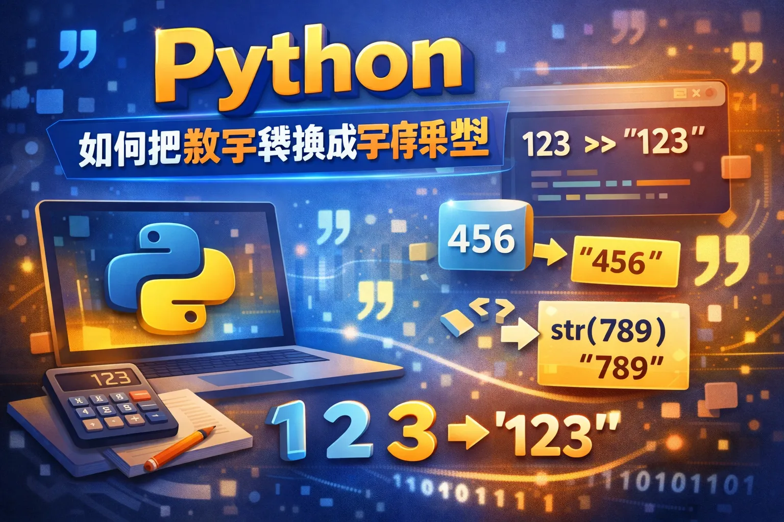 在Python中,可以使用内置的str()函数直接将数字转换成字符串类型,例如str(123)会返回'123'。此外,也可以使用格式化字符串,如f"{num}"或"{}".format(num)来完成转换。