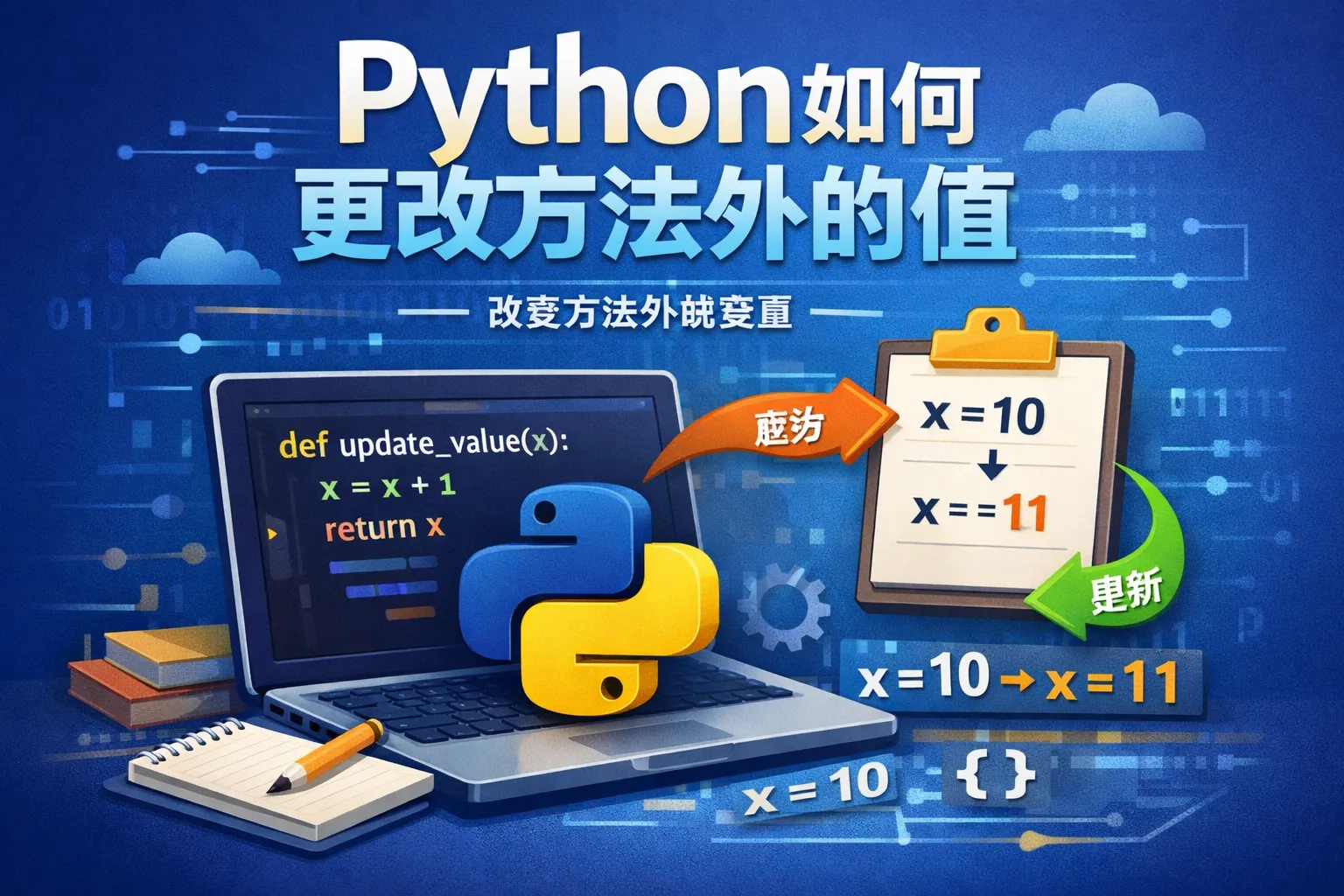 如果变量是在全局作用域定义的,可以在函数内部使用global关键字声明该变量,然后修改它。对于嵌套函数中修改外层函数的变量,可以使用nonlocal关键字。通过这些关键字,函数可以访问并改变外部变量的值。