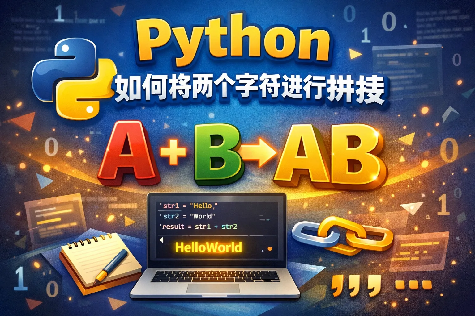 使用 + 拼接大量字符串时效率可能较低,推荐使用 ''.join() 来拼接多个字符串。确保参与拼接的对象都是字符串类型,必要时可以用 str() 进行类型转换。