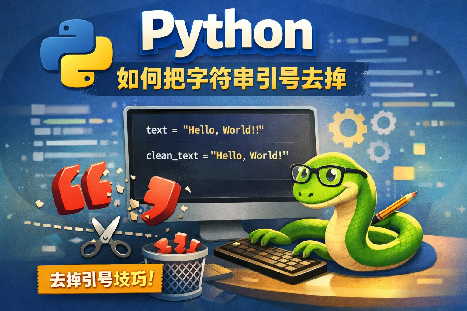 可以调用字符串的replace方法,将引号替换为空字符串。比如,s.replace("'","")会删除所有单引号,s.replace('"','')会删除所有双引号。如果想同时删除单双引号,可以链式调用replace,或者使用正则表达式来完成。