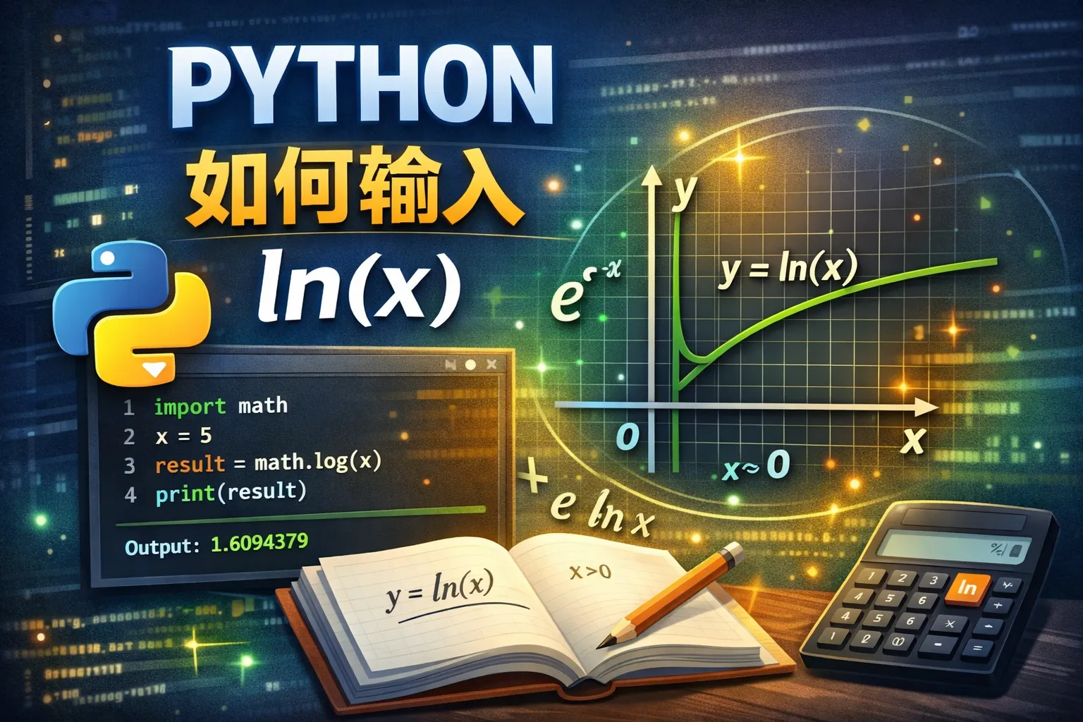 如何在Python里输入表达式ln(x)?