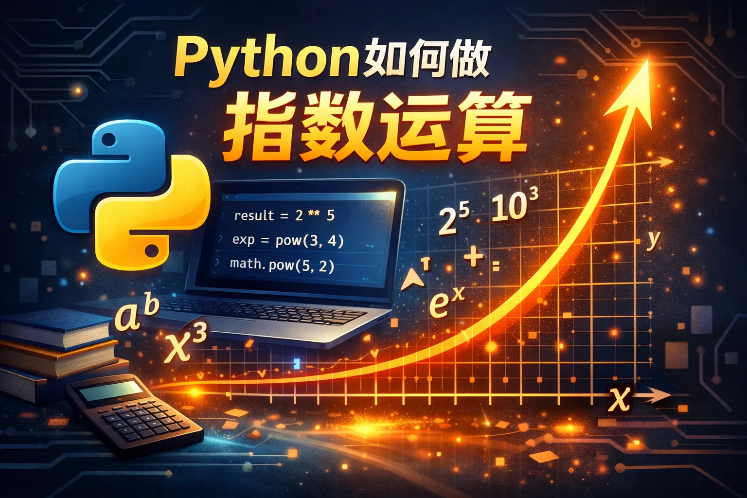 Python的指数运算符()和pow()函数都支持浮点数指数。例如,计算9的0.5次方可以写成90.5或者pow(9, 0.5),这相当于求平方根。此外,math.pow(9, 0.5)也可用于此。需要注意的是,math.pow()返回结果是浮点数。
