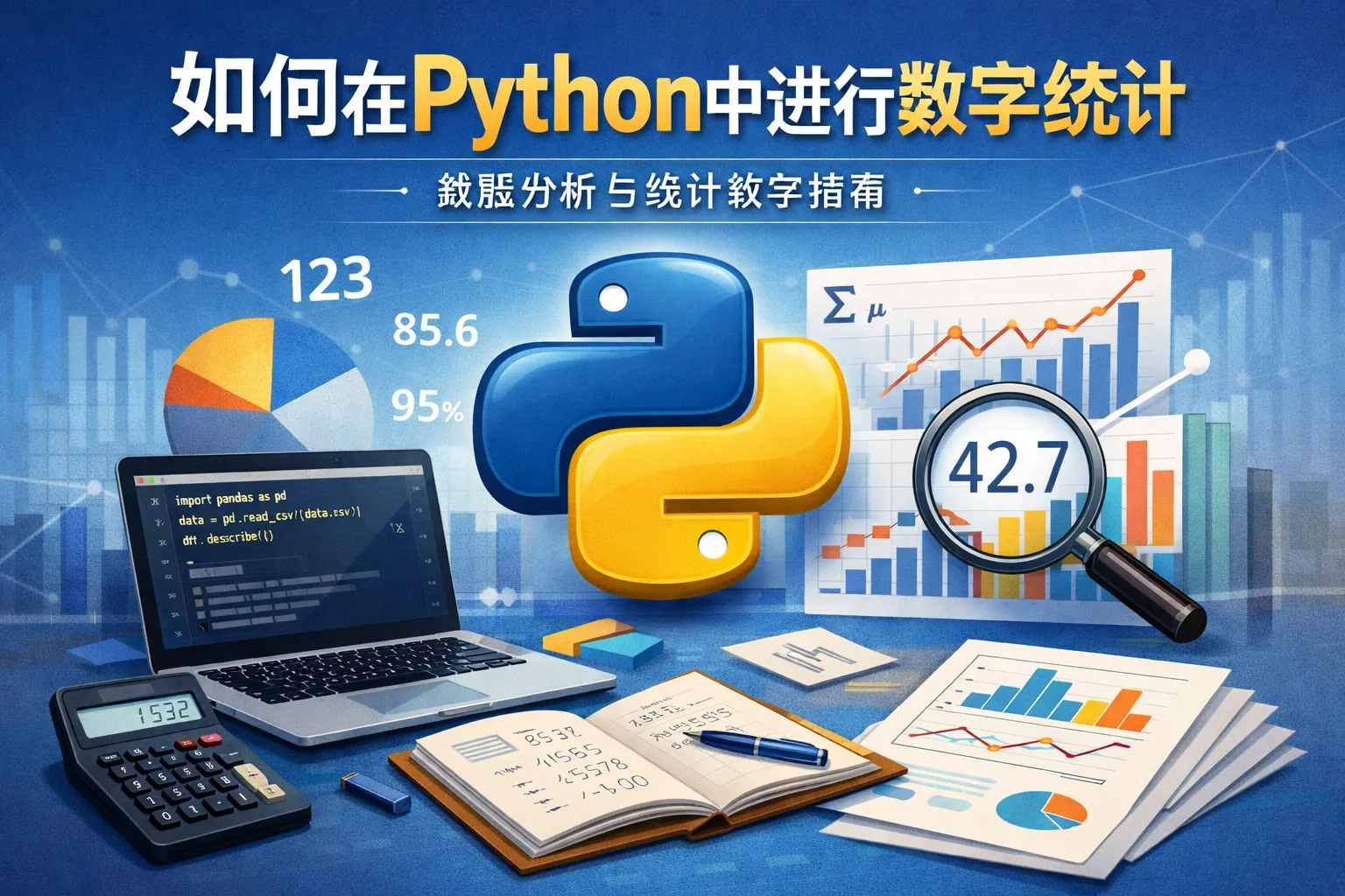 numpy是Python中常用的数值计算库,提供了丰富的统计函数。通过numpy可以轻松计算平均值、中位数和标准差。例如: