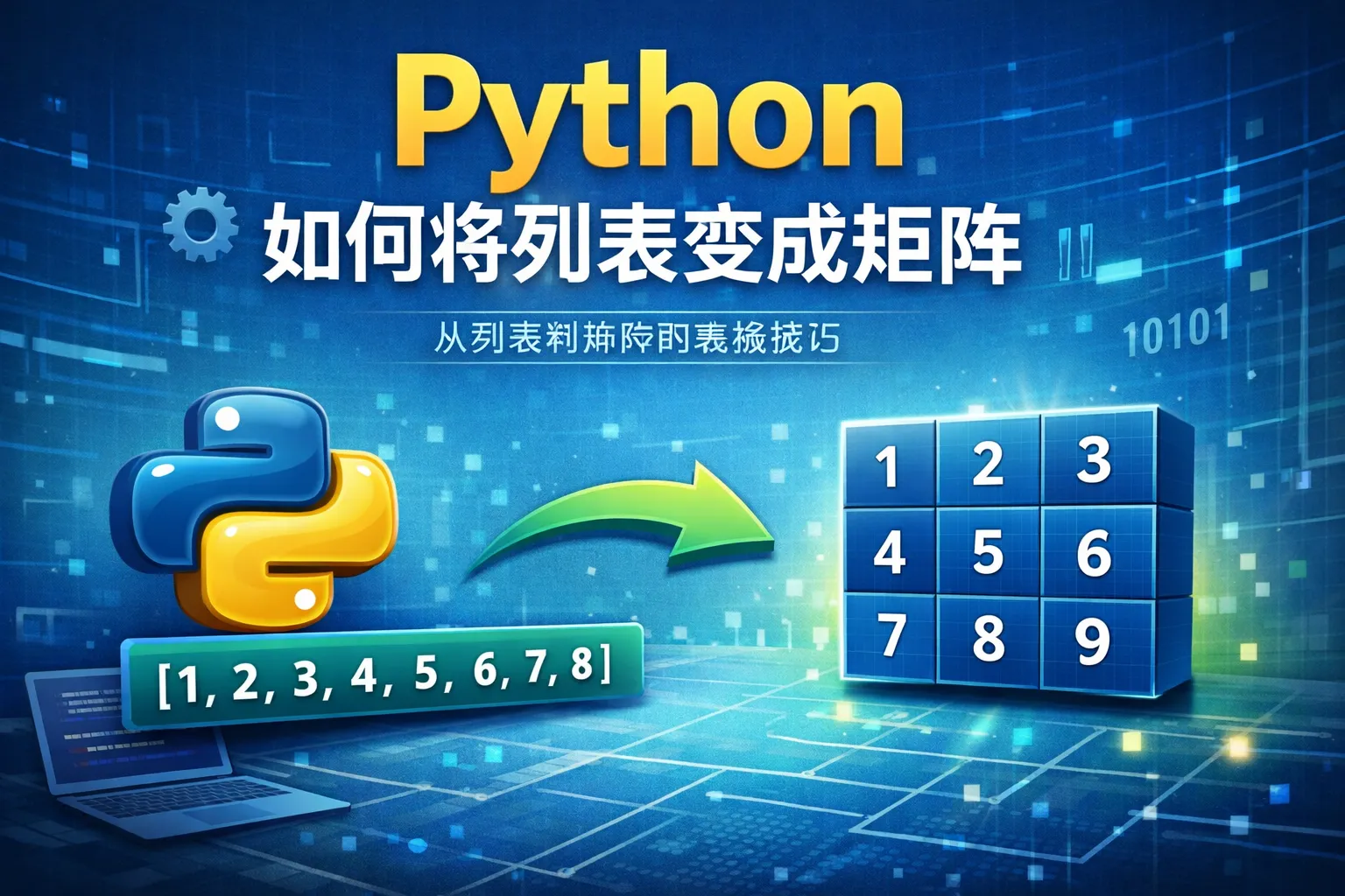 即使没有安装任何外部库,也能用纯Python将列表转换成矩阵。可以通过循环和切片实现。例如,如果想把一个长度为n*m的列表分割成n行m列的矩阵,可按以下方式处理: