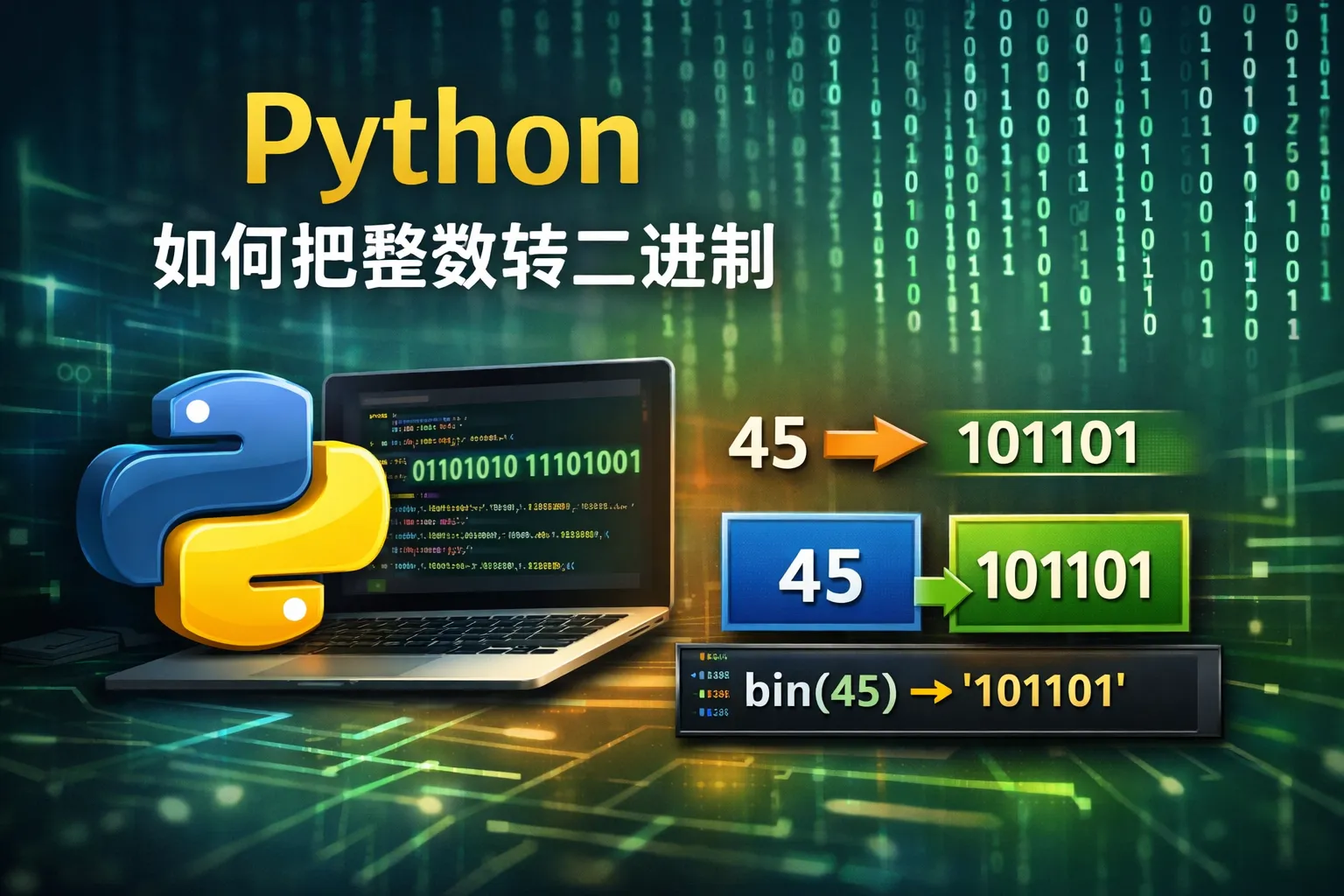 可以使用Python内置的bin()函数,将整数作为参数传入即可得到对应的二进制字符串。返回值带有前缀'0b',例如bin(10)返回'0b1010'。若不需要'0b'前缀,可以用字符串切片来去除。