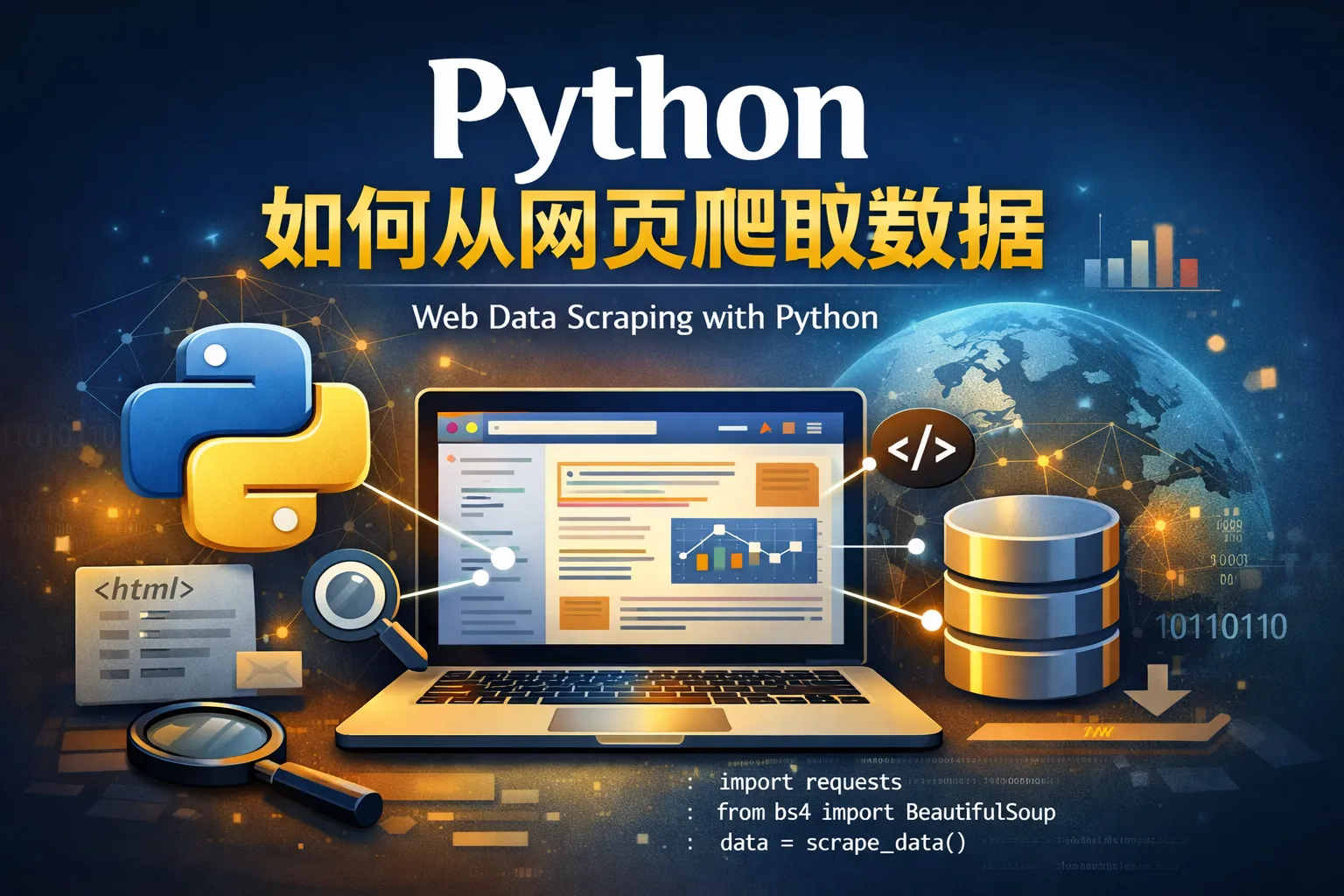 Python爬取网页数据常用的库包括requests用于发送HTTP请求,BeautifulSoup和lxml用于解析HTML内容。此外,Selenium适合处理动态加载的数据,Scrapy适合构建大型爬虫项目。