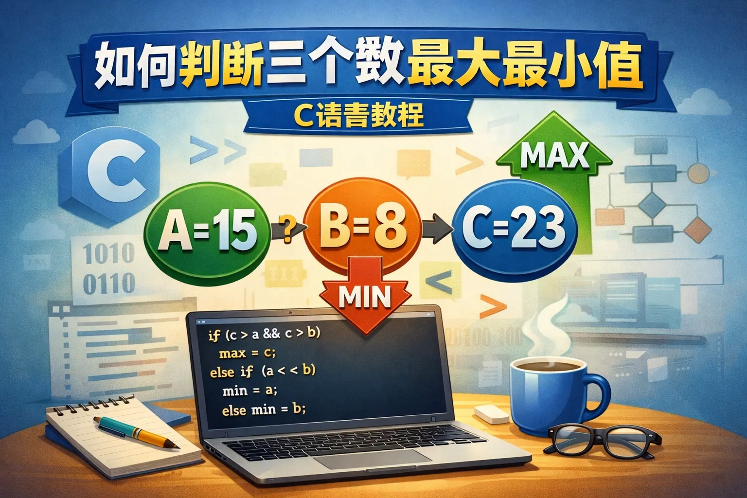 如何判断三个数最大最小值c语言