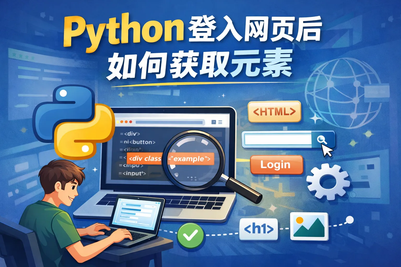 登录网页后,可以利用selenium库模拟浏览器操作,通过find_element_by_id、find_element_by_xpath等方法定位特定元素。也可以使用requests库结合BeautifulSoup解析页面源码,提取需要的内容。Selenium适合动态加载元素的页面,requests适合静态页面。