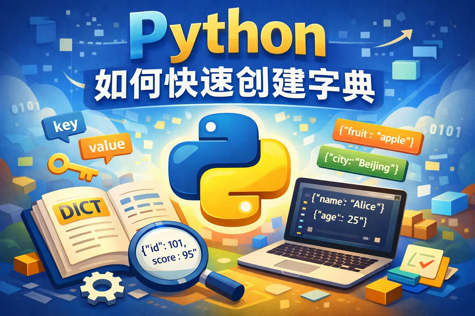 Python提供了多种方式快速创建字典,比如使用字典推导式(dictionary comprehensions)、dict()函数配合zip()函数、或者直接使用花括号{}创建带有键值对的字典。这些方法能帮助你以简洁的代码快速生成字典。