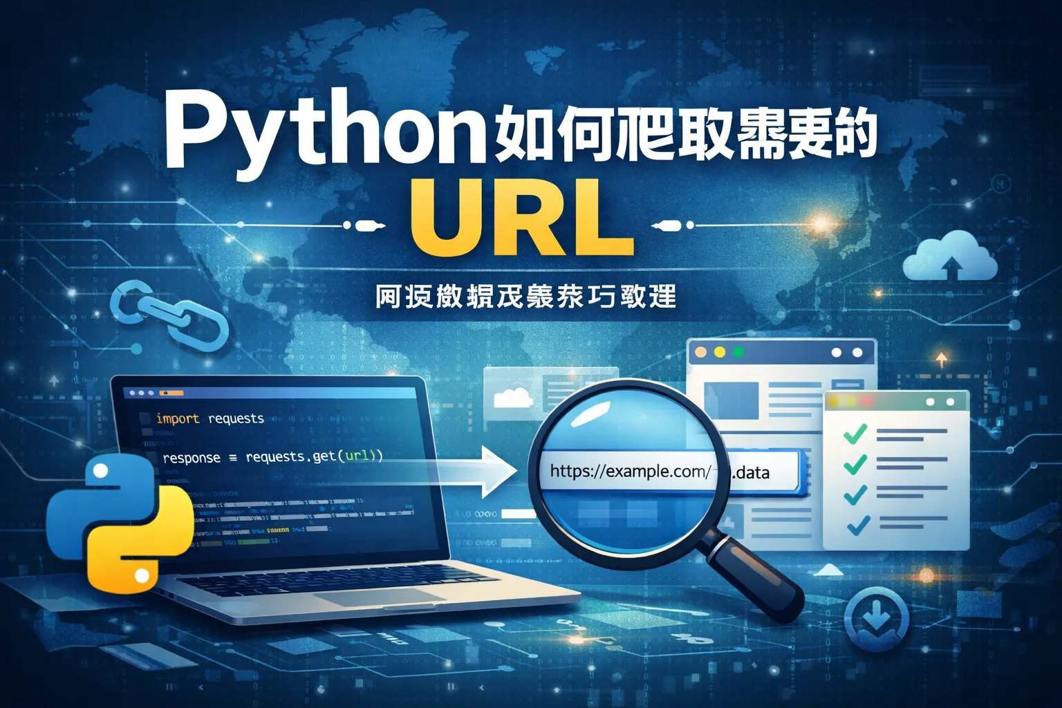 可以使用正则表达式过滤掉不符合格式的链接,并利用Python的set数据结构去除重复的URL。此外,检查链接是否以http/https开头,剔除空链接和锚点链接(#)也很重要。部分情况下还需要判断链接是否属于目标网站域名,从而保证爬取结果的有效性。