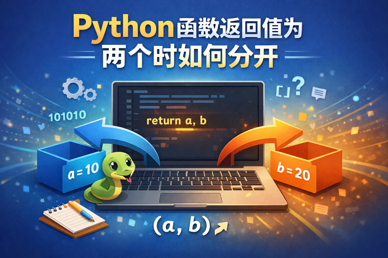 Python函数返回多个值时,可以直接使用多个变量同时接收。例如,func()返回两个值,可以写作 a, b = func(),这样a和b分别对应返回的两个值。