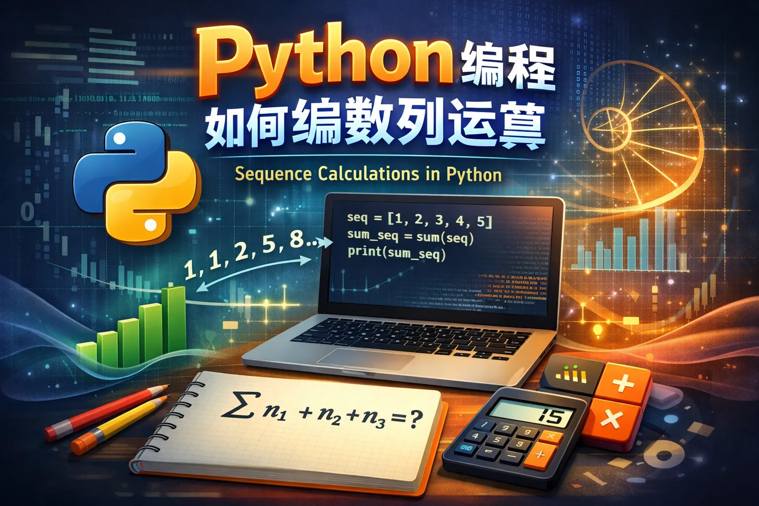 可以利用Python列表或NumPy数组来存储数列。对于列表,可以使用列表推导式或循环逐元素进行运算;对于更高效的计算,建议使用NumPy库,它支持向量化操作,可以直接对整个数组进行加减乘除等运算。
