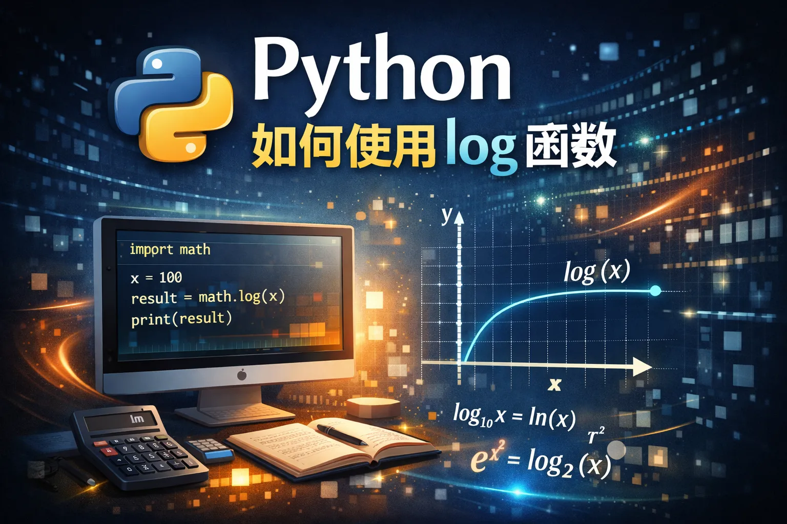 我刚开始学习Python,想知道如何在代码中计算对数,log函数的基本用法是什么?