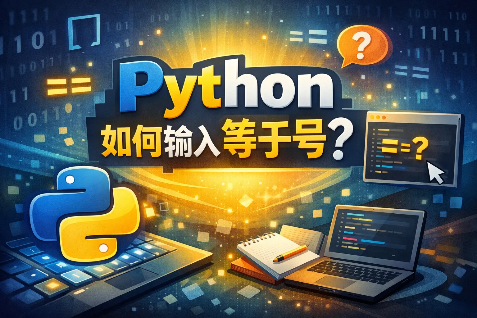 在Python中,等于号(=)用于变量赋值,直接使用键盘上的等号键即可。例如,x = 5表示将数字5赋值给变量x。需要注意的是,比较操作使用双等号(==)来判断两个值是否相等。