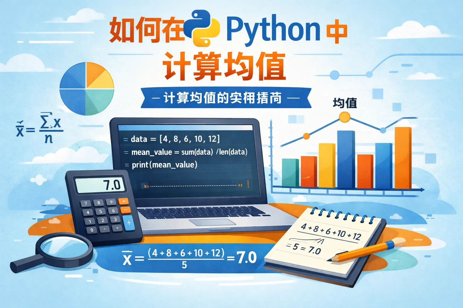 Python中计算均值可以使用内置的sum()和len()函数结合计算,也可以使用统计模块的mean()函数,此外numpy库提供了更高效的mean()函数用于处理数组数据。