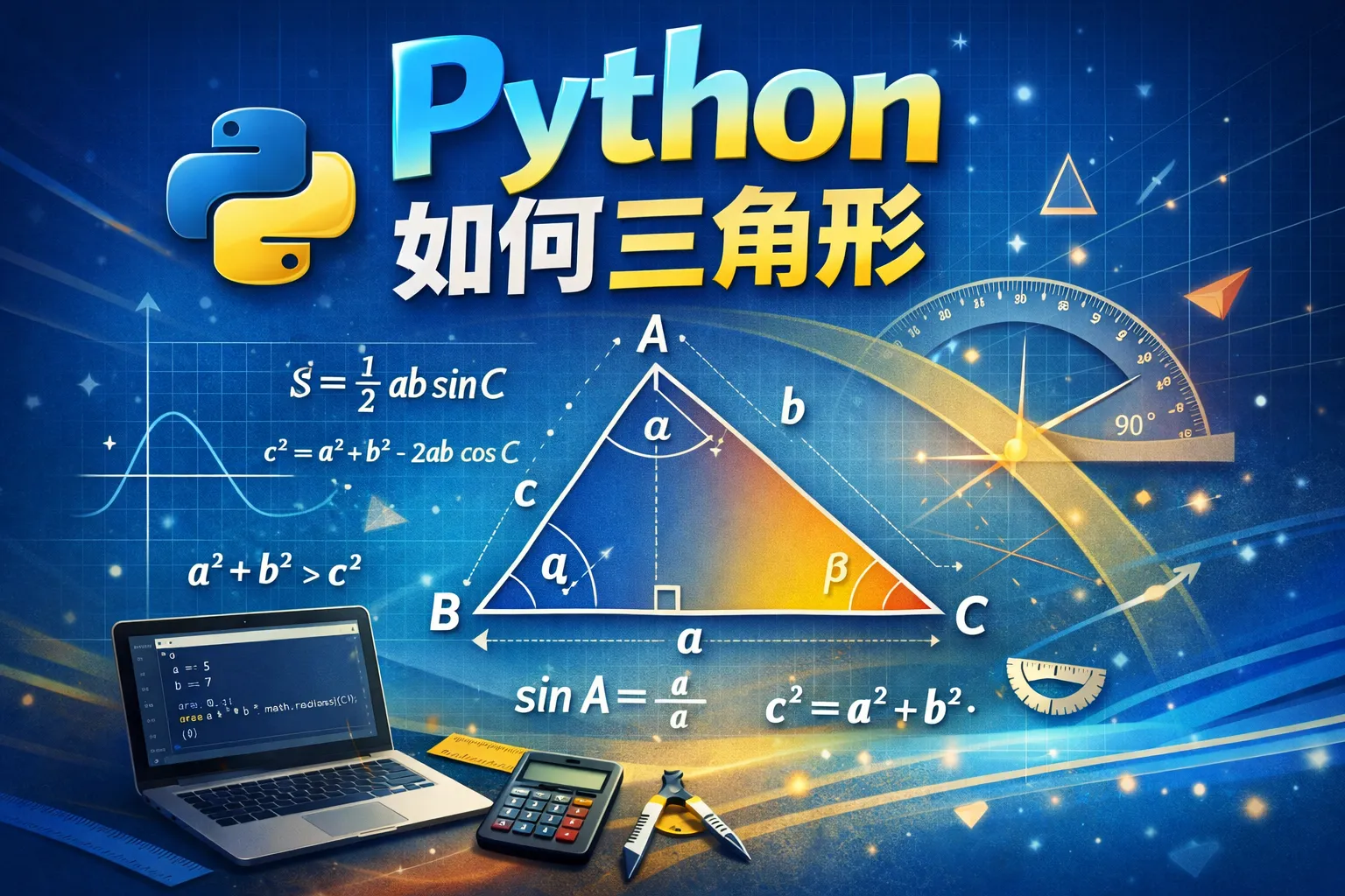 你可以根据三角形的三边长度,使用海伦公式计算面积,周长则是三边之和。具体代码示例如下:输入三条边a, b, c,计算半周长s=(a+b+c)/2,然后面积=√(s(s−a)(s−b)(s−c)),利用Python的math库即可实现。