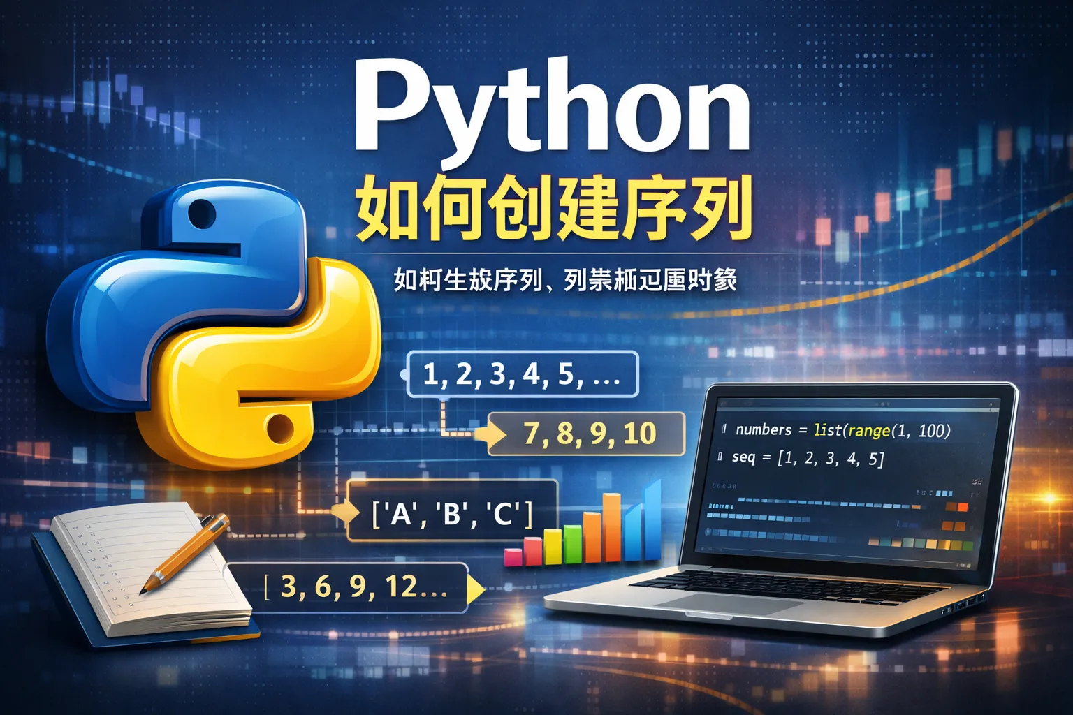 在Python中,序列是一种有序的集合类型,常见的序列类型包括列表(list)、元组(tuple)、字符串(str)、范围对象(range)等。创建序列的方式多样,比如使用方括号创建列表,如[1, 2, 3];使用圆括号创建元组,如(1, 2, 3);直接赋值字符串,如"hello";使用range()函数来生成数值序列。