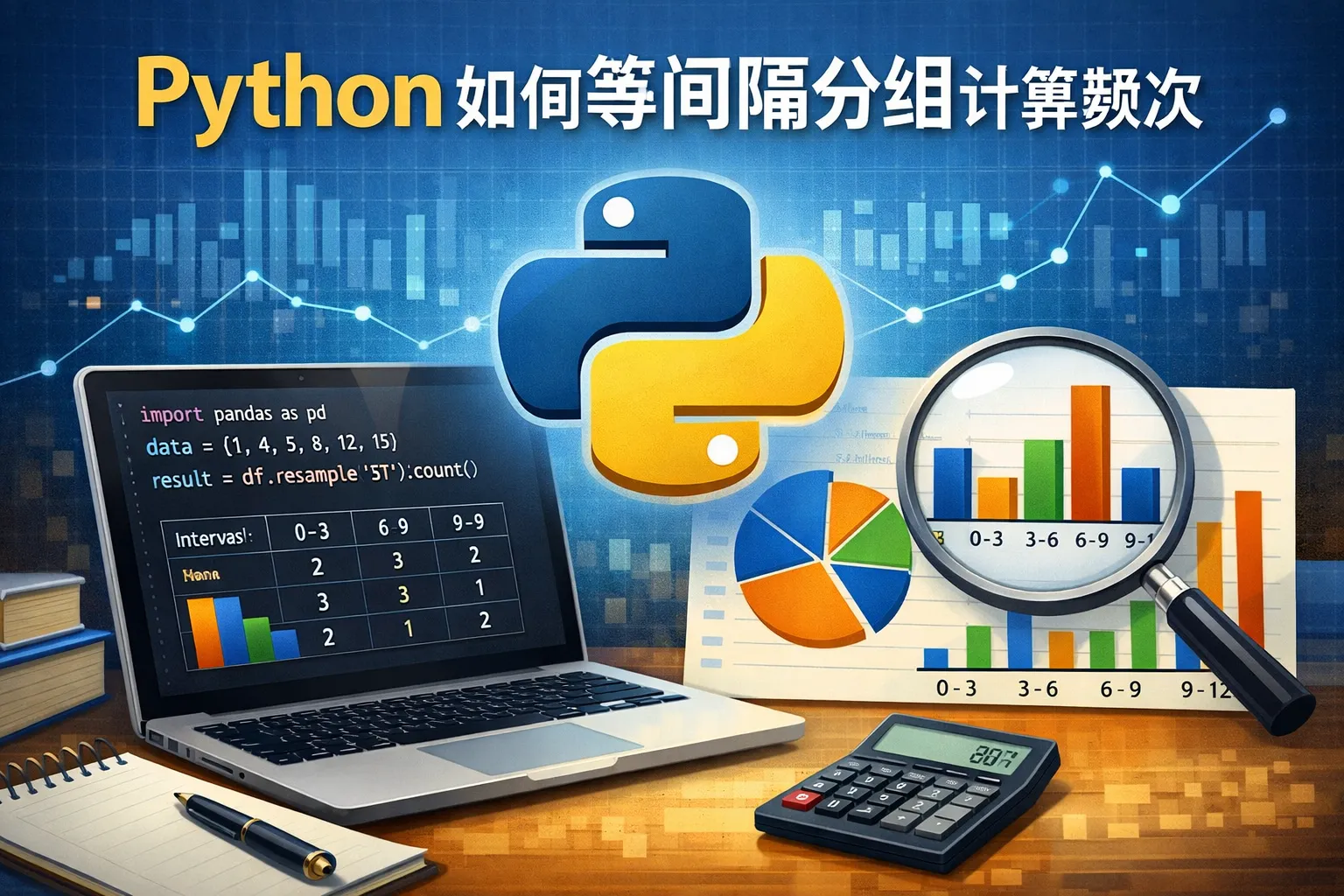 将数据用pandas.cut分组后,可以利用value_counts()快速计算每个区间的频次,也可以借助groupby结合size()方法完成统计,得到每个组别的数据数量,方便进行频率分析。