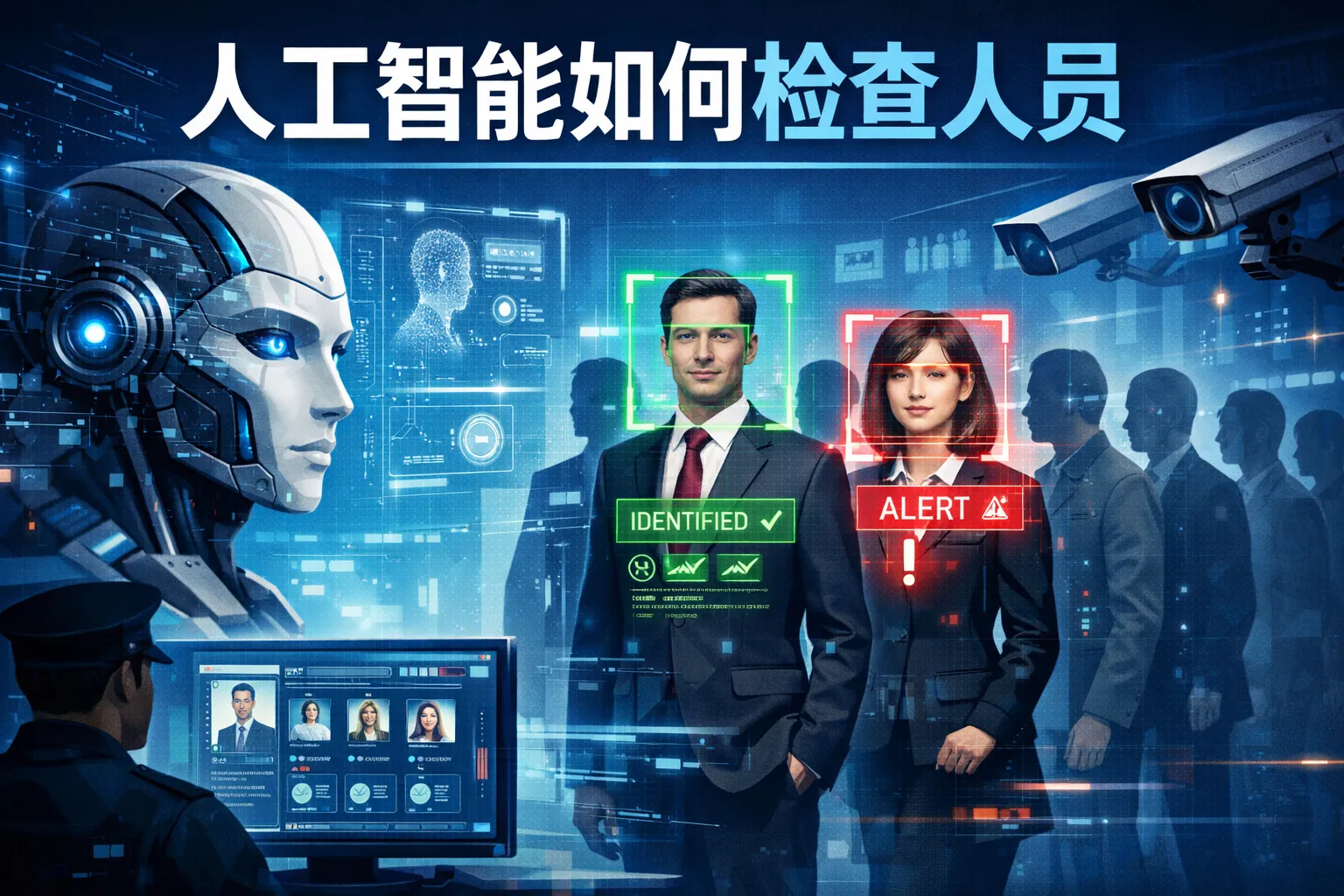 人工智能通常借助人脸识别技术,通过摄像头采集人员面部图像,利用深度学习算法分析关键特征点,进而比对数据库中的已存储身份信息,从而完成对人员的识别与验证。