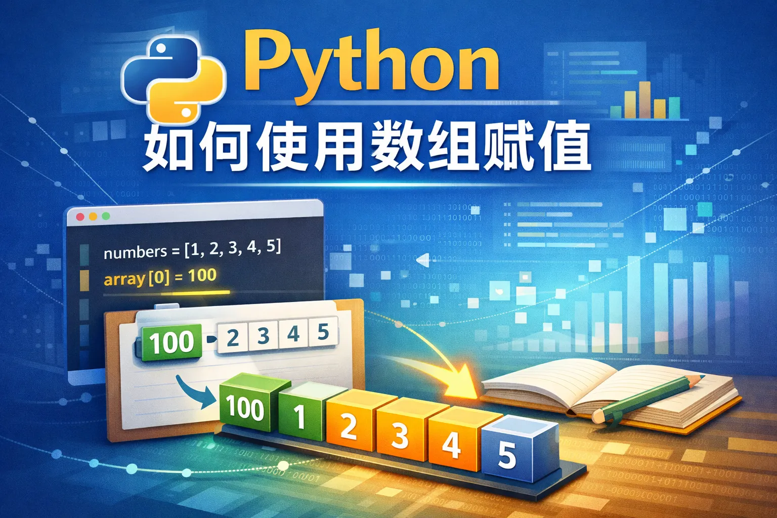 Python 支持通过索引访问数组元素,并对其直接赋值。假设数组名为 arr,可以通过 arr[index] = new_value 将指定位置的元素修改为 new_value。对于多维数组,使用多重索引如 arr[i][j] 或 arr[i,j](NumPy 数组)来定位元素后赋值。