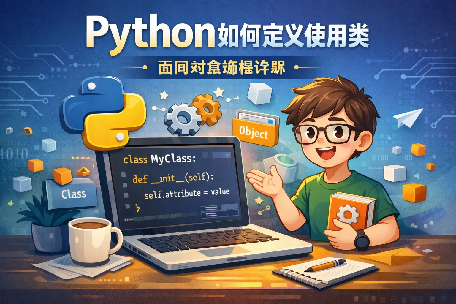 在Python中,类使用关键字class来定义。基本结构包括类名和缩进的类体。可以在类中定义属性(变量)和方法(函数)。例如: