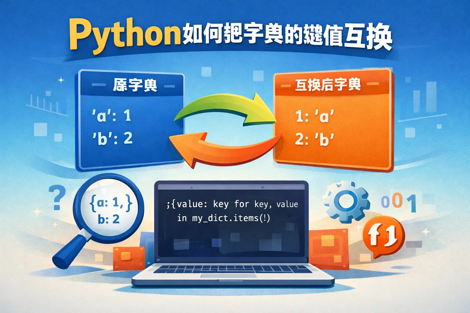 Python标准库没有专门的函数用于字典键值互换,但可以通过字典推导式简洁实现。第三方库中较少有专门功能,通常还是推荐使用推导式。