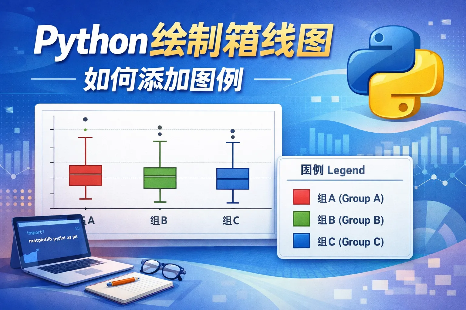 绘制箱线图时,需确保为每组箱线图设置了label标签,如果是通过boxplot返回的字典进行绘制,可能需要手动创建对应的图例句柄。使用plt.legend()前要保证图例项已添加,否则图例不会出现。