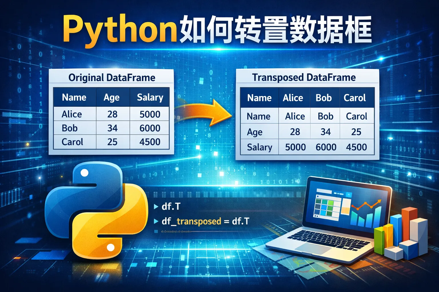 转置操作会将原来的行索引变为新的列标签,而原来的列标签则变成新的行索引。这样数据框的结构被重新排列,使列变为行,行变为列。