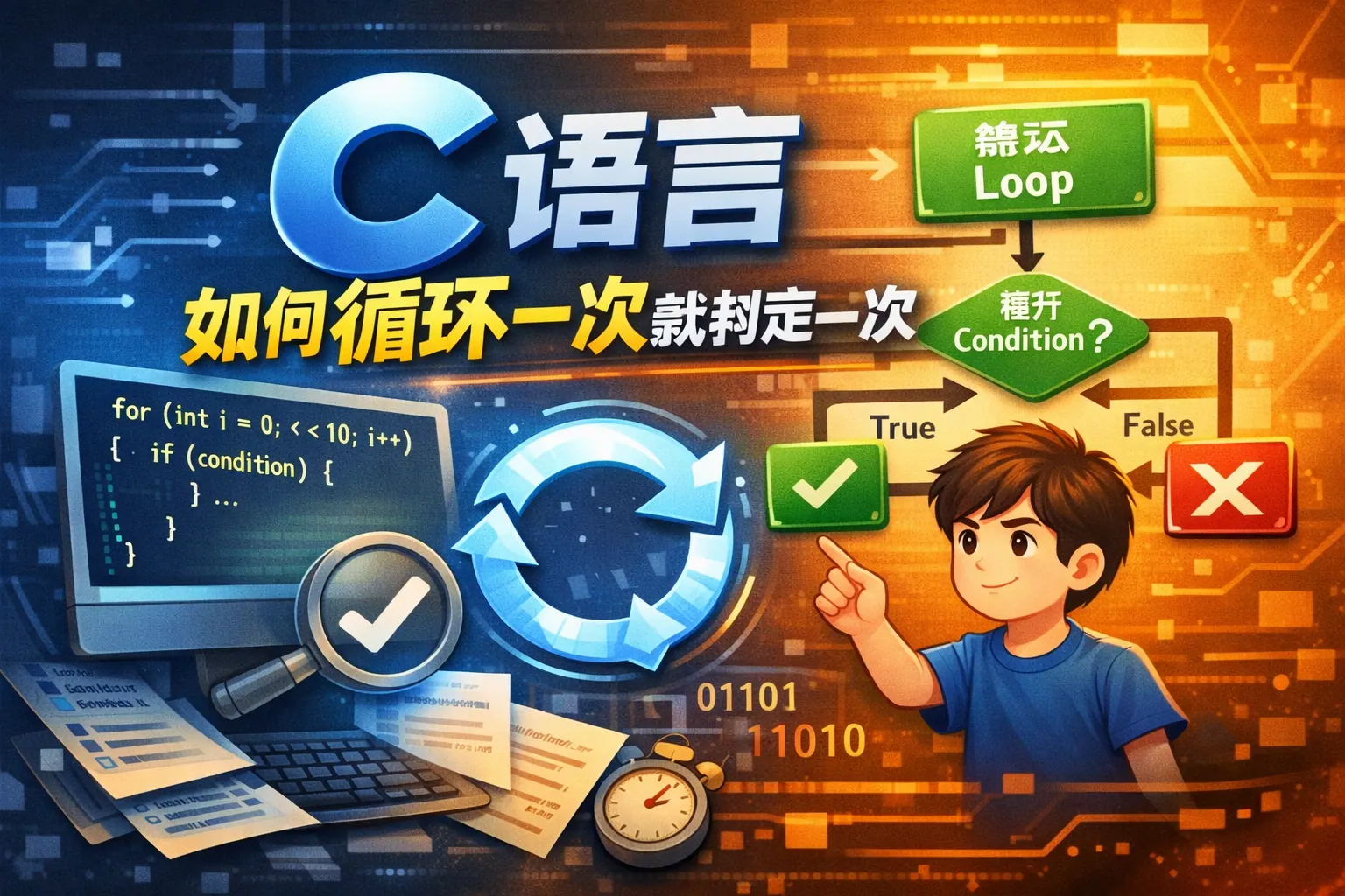 在C语言中如何实现每执行一次循环就进行一次判断?