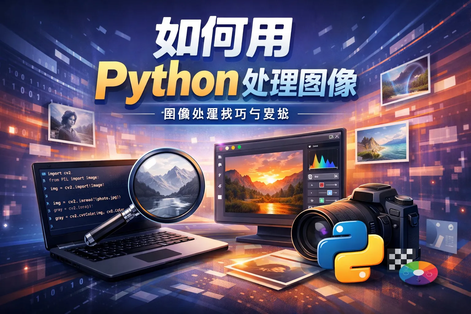 通过Pillow库,能方便地对图像进行裁剪、缩放和颜色调整等操作。裁剪可以使用crop()方法,传入一个四元组坐标实现对部分区域的裁剪;缩放可用resize()方法改变图像尺寸;颜色调整可以通过convert()方法进行模式转换,如转换为灰度图像。此外,也能用ImageEnhance模块增强对比度、亮度等。以下示例演示了裁剪和缩放的用法: