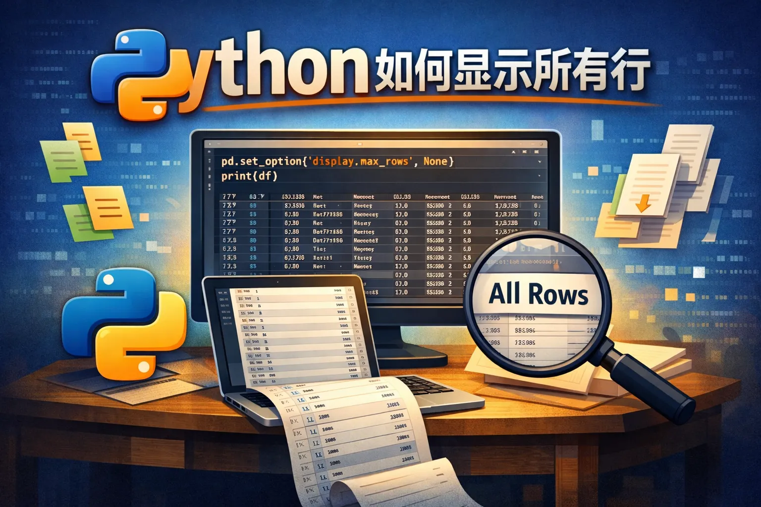 可以使用Pandas库中的选项设置功能,通过 pd.set_option('display.max_rows', None) 来显示所有行。这样打印DataFrame时,不会被截断,所有行都会完全显示。