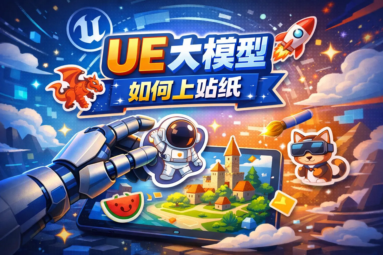我想在Unreal Engine的大模型上添加贴纸效果,有哪些步骤和方法可以实现?