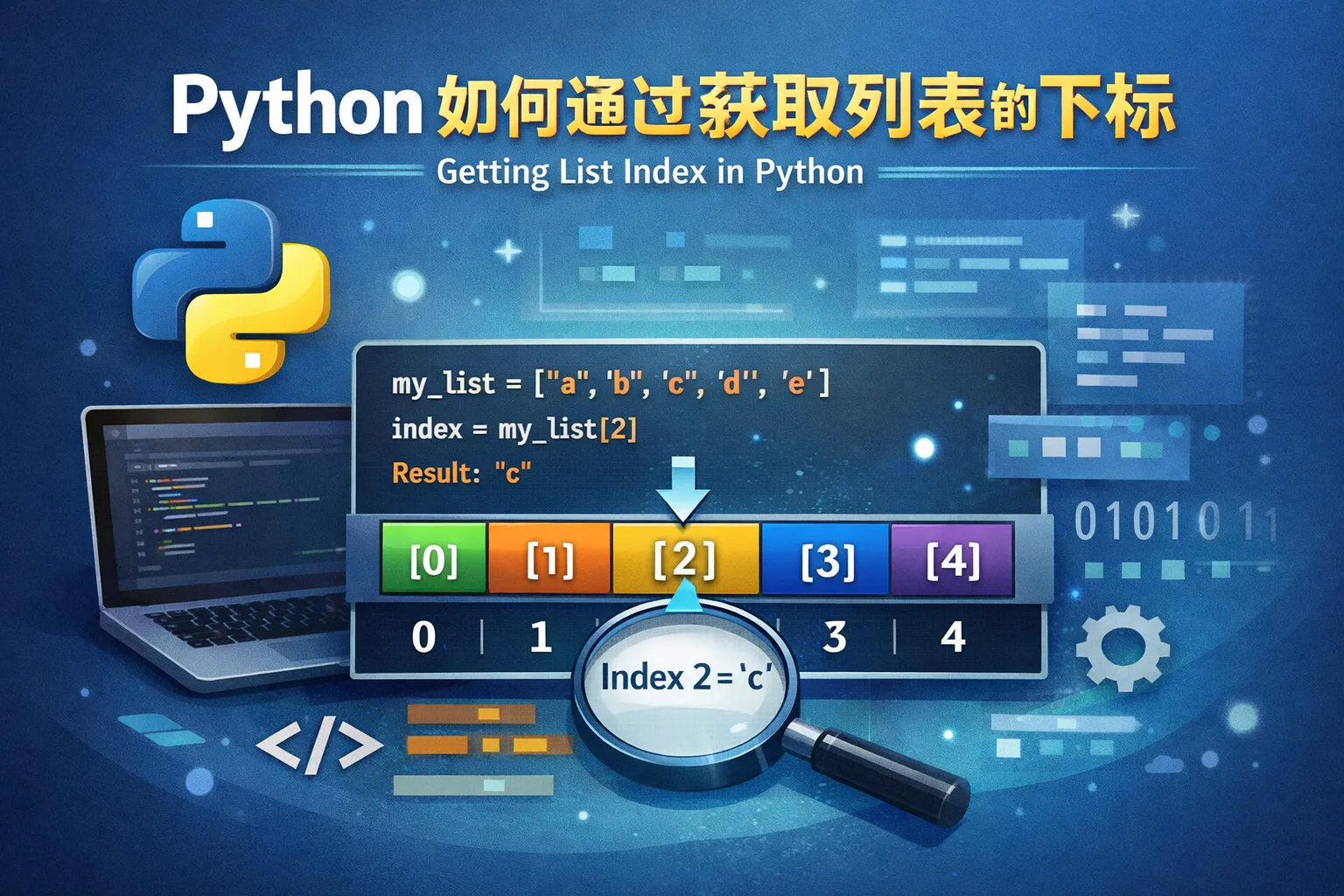 Python列表提供了index()方法,可以返回元素第一次出现的位置(索引)。例如,list.index(value)会返回value在列表中的下标,如果元素不存在,则会报错。