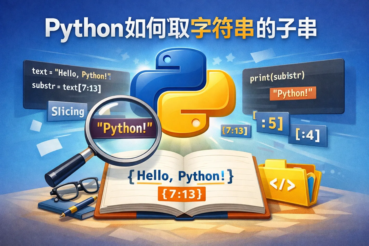 Python可以通过切片操作符(slice)来获取字符串的子串,例如 str[start:end] 会返回从索引start到end-1的字符。另外,还有一些内置函数如 str.split()、str.find() 配合切片使用也能实现子串的提取。