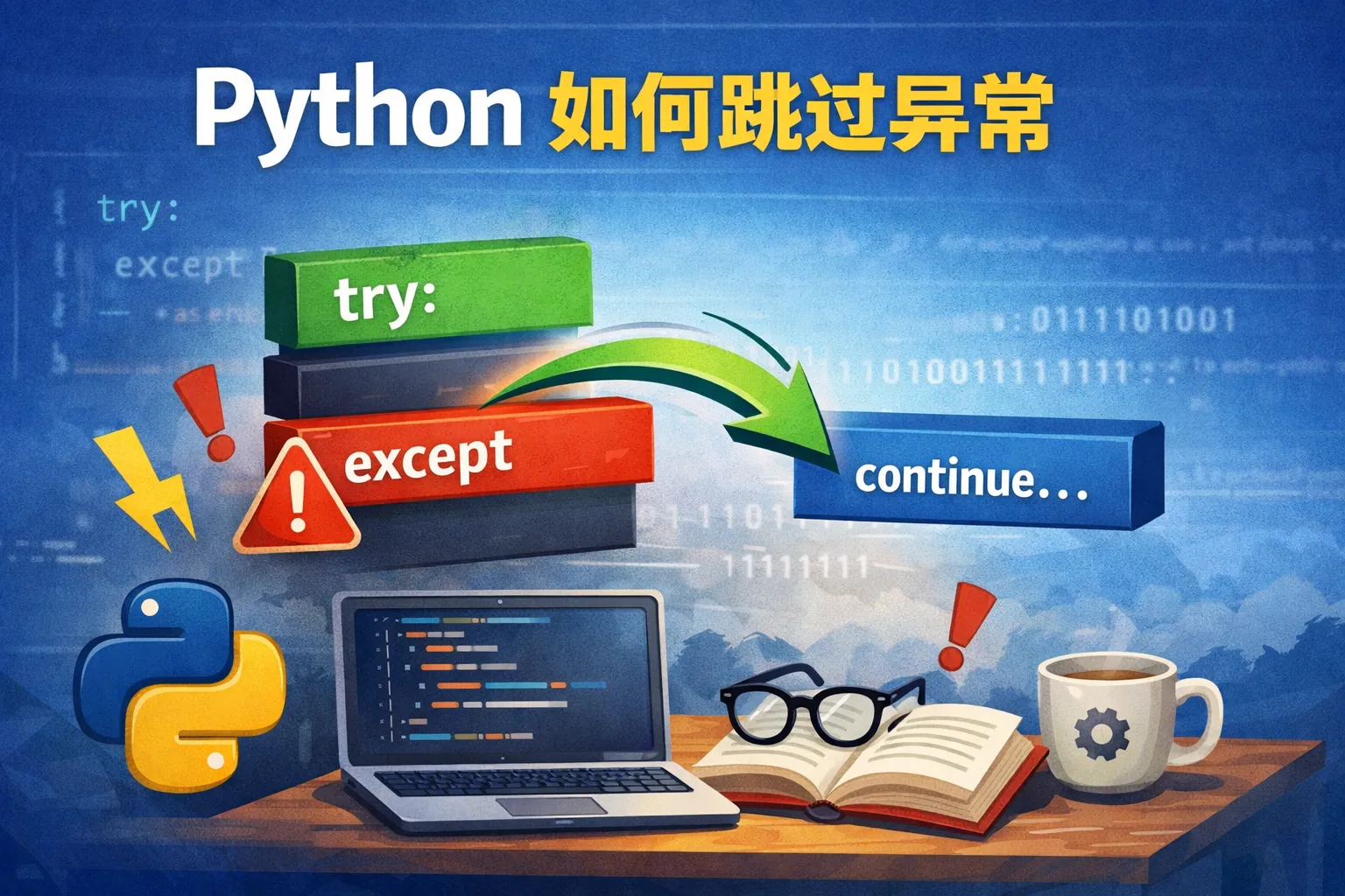 可以使用try-except语句来捕获并跳过异常。将可能出现异常的代码放入try块中,当异常发生时,会被except块捕获并处理,从而避免程序崩溃。举例来说: