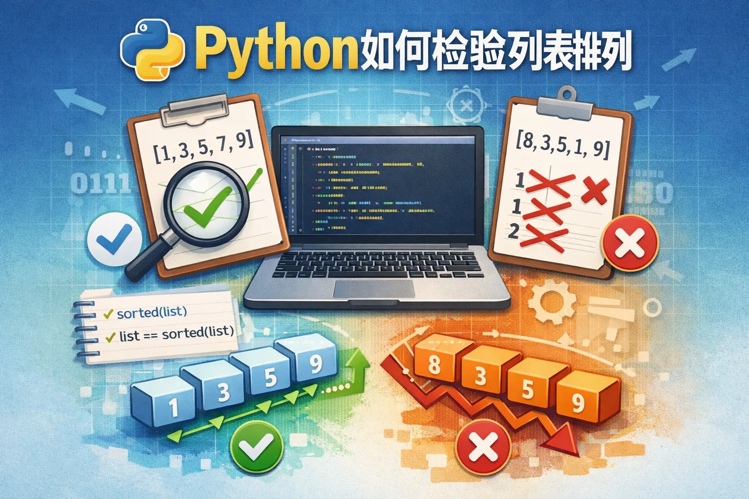 可以使用比较运算符结合 Python 的 all() 函数,判断列表中相邻元素的大小关系。例如,判断是否递增可以用 all(lst[i] <= lst[i+1] for i in range(len(lst)-1))。类似地,判断是否递减可以用 all(lst[i] >= lst[i+1] for i in range(len(lst)-1))。