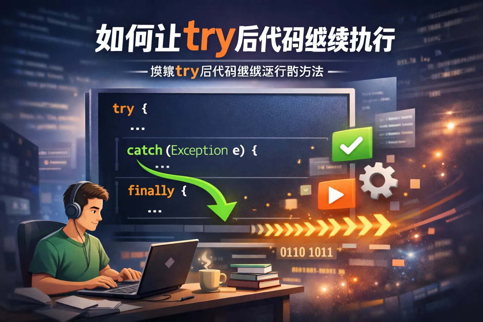 如何在try代码块出现异常后继续执行后续代码?