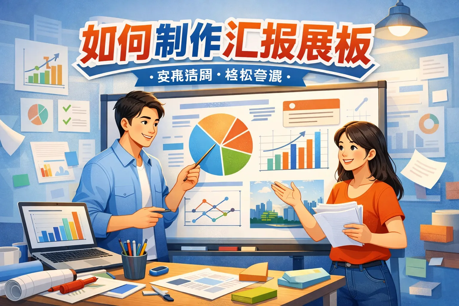 制作汇报展板时,应重点关注内容的清晰逻辑、视觉层次分明以及色彩搭配协调。合理安排标题、正文和图表的位置,确保观众能够快速抓住重点信息。选择简洁的字体和适当的字体大小,避免信息过于密集,同时利用图表或图片辅助说明,提高展板的吸引力。