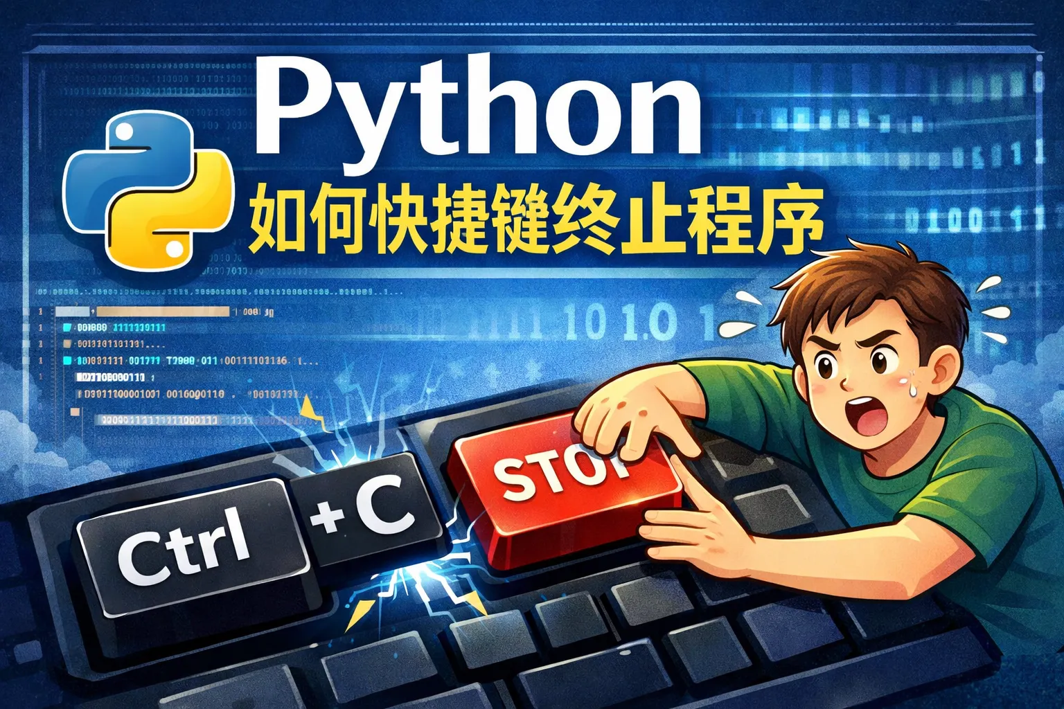 在大多数终端或者命令行界面中,按下Ctrl+C组合键可以发送中断信号给正在运行的Python程序,这样程序会立即终止。这是一种非常常用且快速的停止方法。