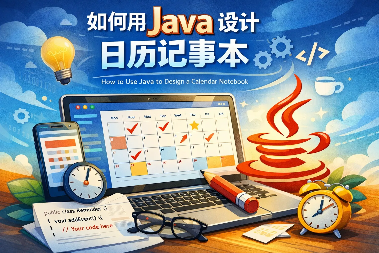 我想用Java设计一个简单的日历记事本应用,应该从哪些核心模块入手?